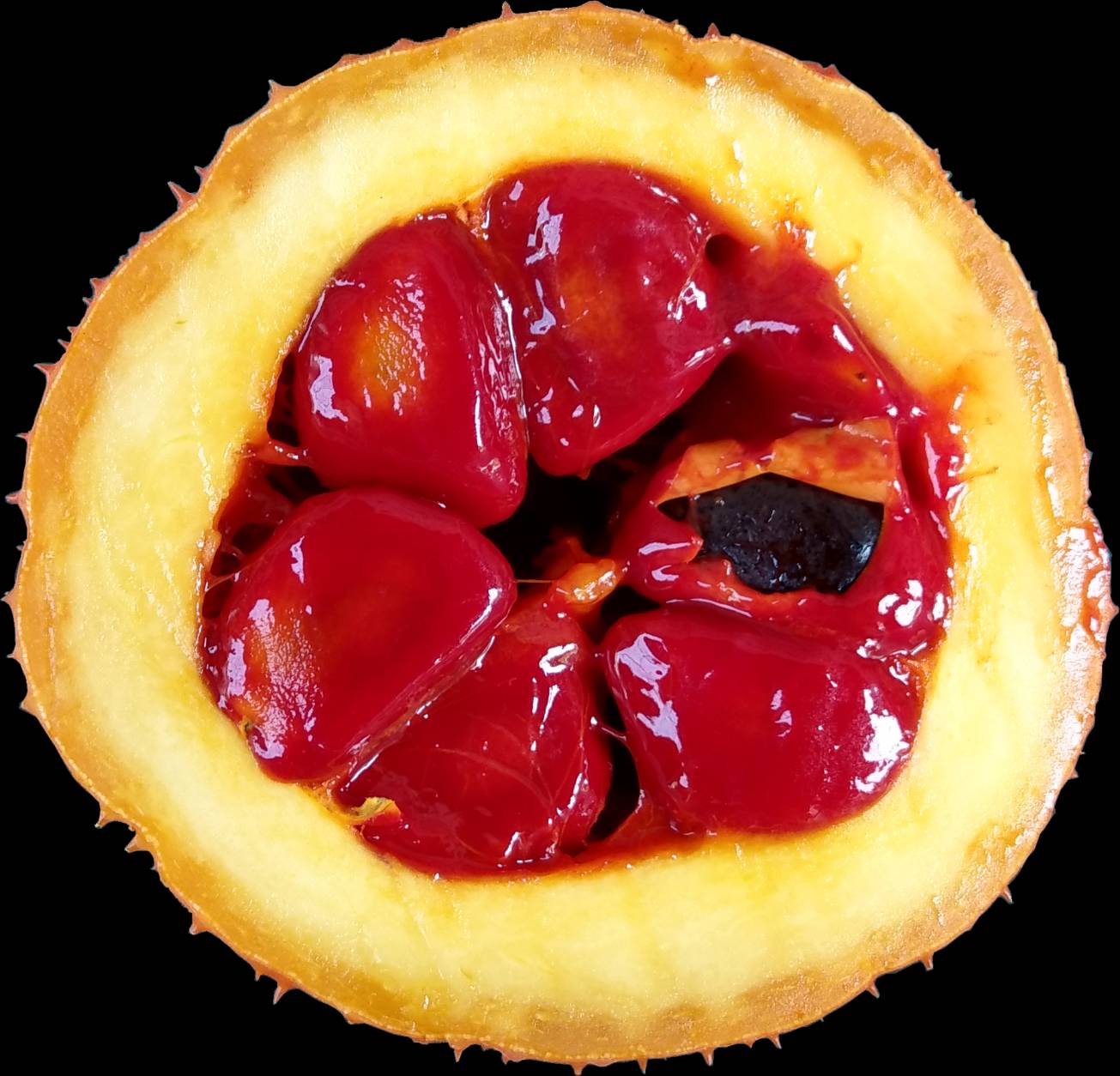 臺灣原生種木虌果,黃色果肉及紅色的假種皮均可食用。(圖片提供/臺東區農業改良場)