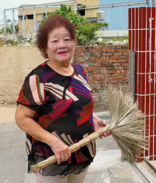 嘉義朴子的德興社區過往是槺榔掃把的重要產地,侯鳳珠十五、六歲時就學會編織槺榔掃把,最厲害的時候一天可以綁出一百二十支,「以早入厝的時候,會在門口撒一寡錢,一面講好話,一面把金銀財寶掃進來,續來把掃把放在尪架桌(ang-kè-toh)下四個月,象徵聚納福氣。」她分享,大而長的葉子性質較軟適合當頭端,較小較短的比較硬就放後端,整支掃把是由三或五把葉束集合而成,「民國六十幾年彼時陣,整個庄頭都嘛在綁,阮十幾個查某囡仔吃飽閒閒規工都在綁掃把。」早起六、七點起工,有時候甚至做到晚上十一、二點,「需求量大啊,外地的人來批,每次都幾千支在收……現在沒人要用了啦,社區也只剩我們兩三個還會曉。」話語重現數十年前庶民生活日常:「但我還是會綁來自己用,比塑膠的較好用啦。」侯鳳珠呵呵笑著。
