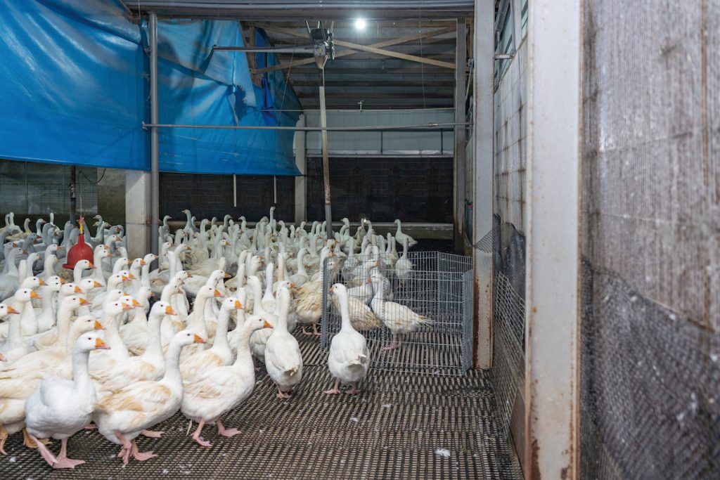 除了控制總產量,李吉配也想選育出性狀更好的品系。今年他從法國引進新品種,希望改進臺灣目前品種單一、出現近交衰退的現象。他說,其實在多年前就有引種、育種打算,無奈好事多磨,「我們也等了6年,因為中間遇到COVID-19疫情,法國那邊也遇到禽流感。」直到今年才終於順利進口種鵝。