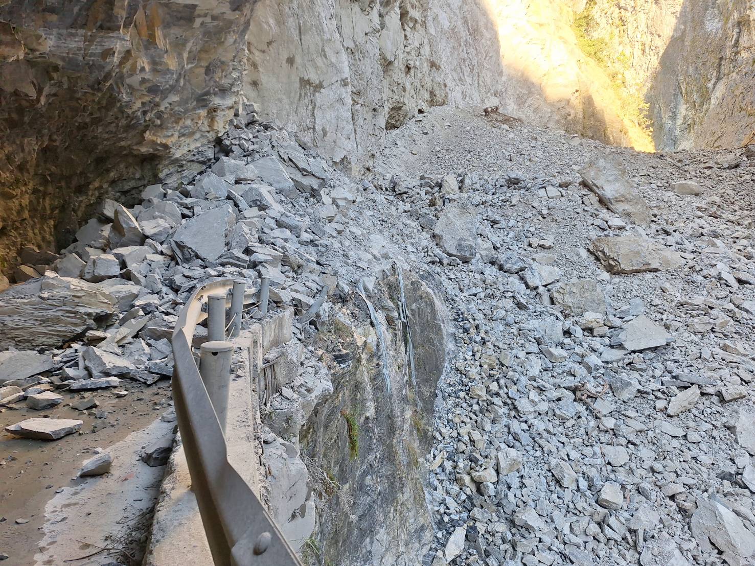 太魯閣國家公園燕子口一帶因大規模崩塌形成堰塞湖。(圖片提供/林業保育署花蓮分署)