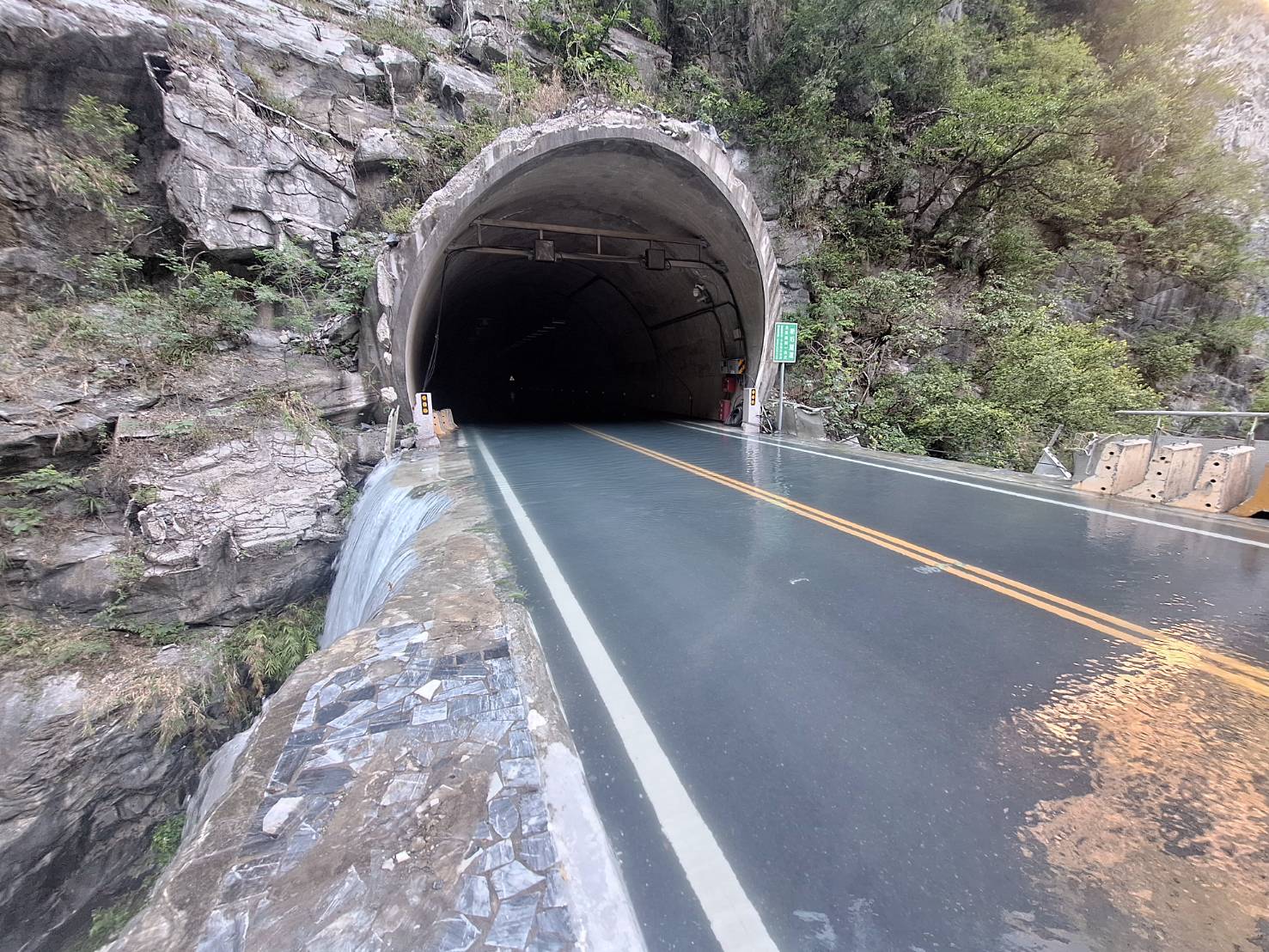 花蓮分署指出,根據公路局東區養護工程分局CCTV影像顯示,今日凌晨2時30分左右,堰塞湖水開始漫淹至台8線靳珩隧道西口路面,隨後湖水經西口沿隧道向東漫流,溢流水出了隧道出口後立即從到道路兩側流回立霧溪河道。現場觀察顯示,水流穩定,未對下游造成重大威脅。