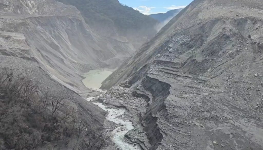 新形成堰塞湖體預估24小時後蓄滿。(圖片提供/林業保育署花蓮分署)