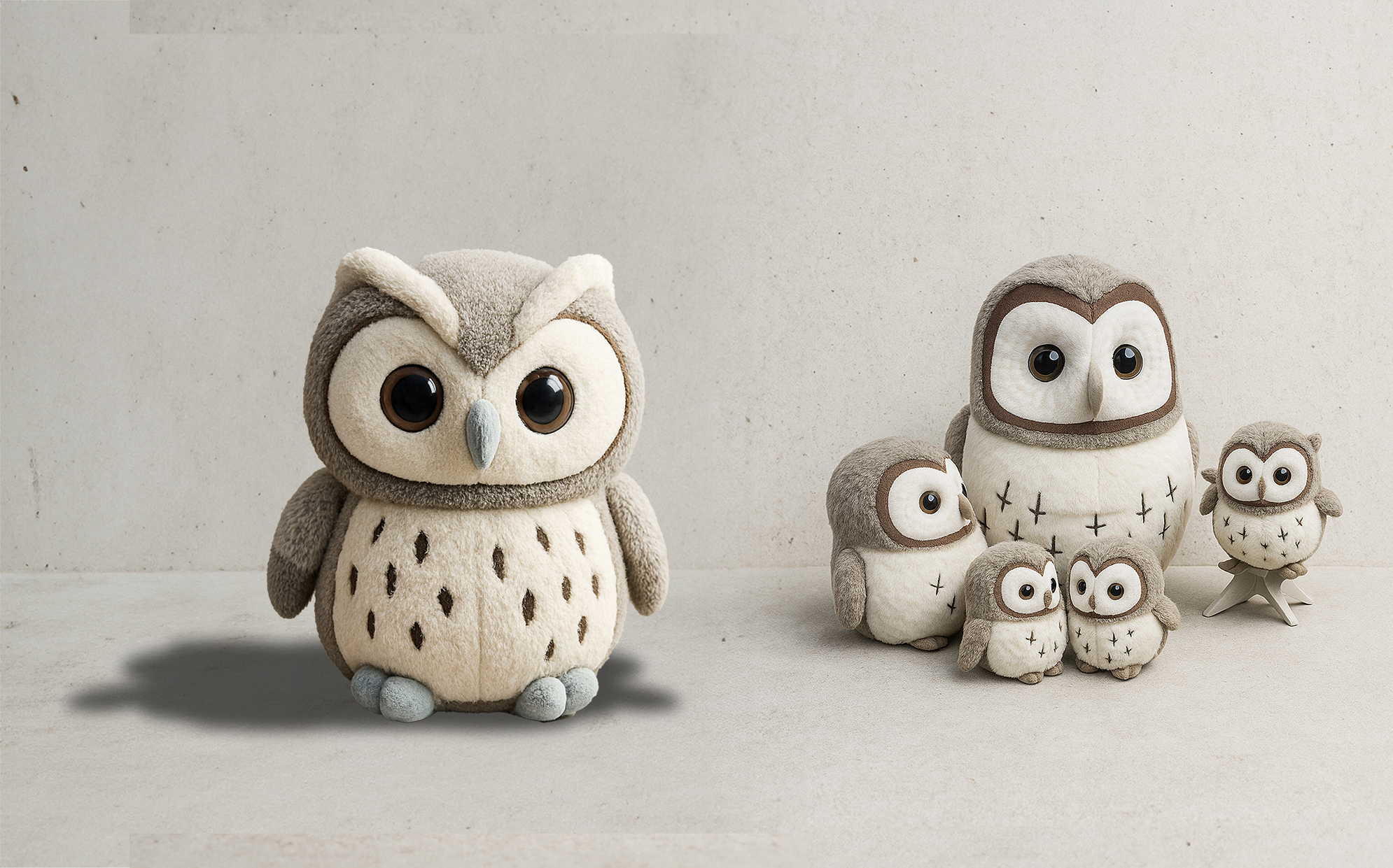 太平山國家森林遊樂區及羅東林業文化園區在地物種灰林鴞與領角鴞玩偶。(圖片提供/林業保育署)