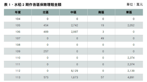 一、2期作水稻收入保險