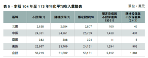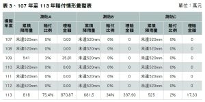 (4)投保面積及投保比例設定:假設每年投保面積維持不變,並以採用113年作為計算基礎,投保比例設定100%,並依此計算各區保費支出。