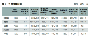 (3)投保面積設定:假設每年投保面積維持1公頃並依此計算各養殖品項保費支出。