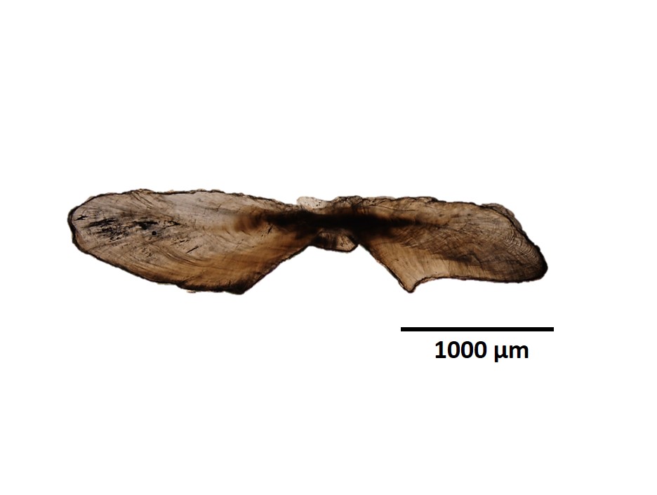 康氏馬加鰆稚魚「耳石」橫切面。(圖片提供/水試所)
