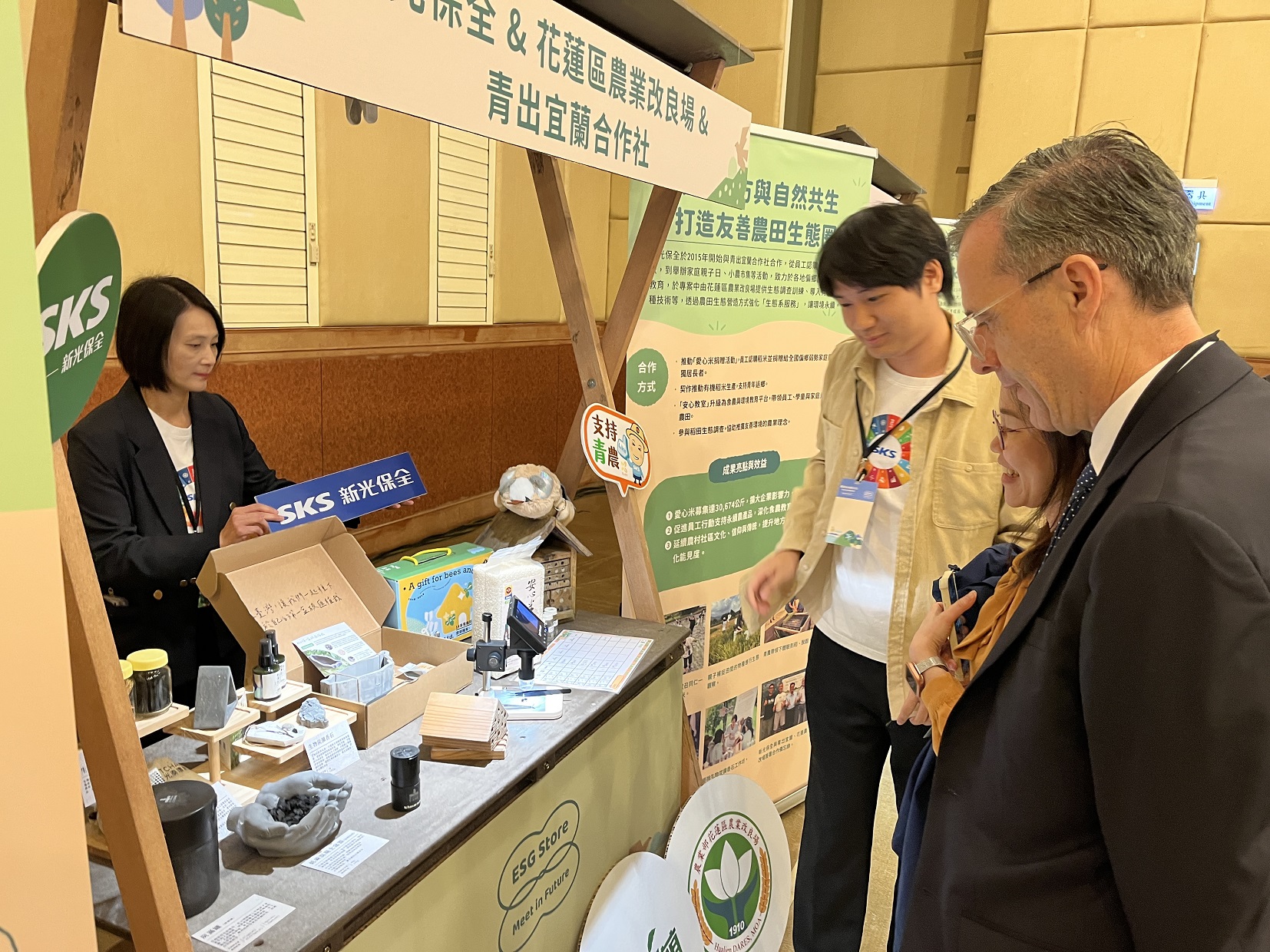 農業部今日舉辦「ESG STORE」周年成果發表,外賓參觀展出攤位。(攝影/游昇俯)