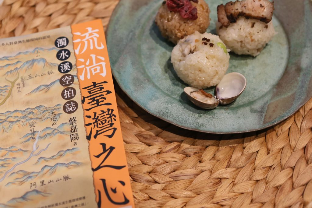 自煮生活與蔡嘉陽合辦《流淌臺灣之心》分享會,用書籍與飯糰介紹濁水溪。(攝影/孫維揚)