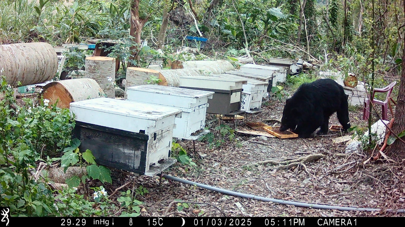 黑熊在蜂場偷吃蜂蜜的影像紀錄。(圖片提供/林業保育署)