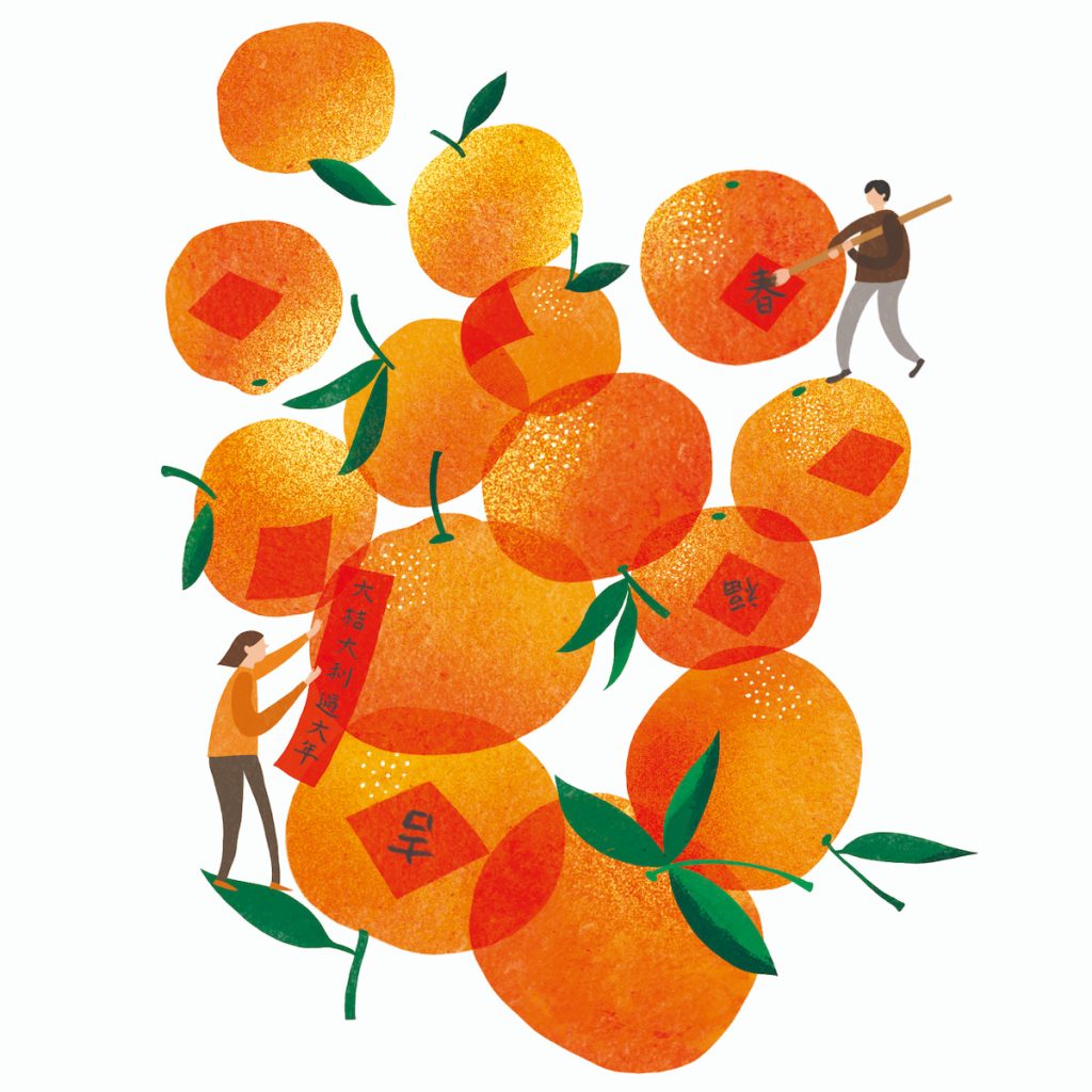 橘子來到我家之後,一堆一堆的分好,送給左鄰右舍,最後留下的橘子展開淘汰賽。表皮坑坑疤疤、布滿黑點的那些橘子都挑出來,收進廚房裡,我們這些孩子可以任意吃。表皮漂亮的,洗乾淨後擦乾,盛在一只大碗裡,爸爸剪了小紅紙,寫上「吉」、「福」、「春」這類的毛筆小楷,貼在橘子上,是過年時專門待客的。用不了三天,廚房裡的淘汰品就被我們吃光了,於是虎視眈眈的研究待客橘子,認真挑出它不夠完美的瑕疵:「這個皮上黑點變多了,我把它解決了吧。」還沒等到回答,已經在橘子的肚臍上留下指痕,父母帶著笑意縱容了。在那個物資缺乏的年代,過年就是一個盡情吃喝的時刻。年還沒過完,碗底朝天,橘子早就已經吃完了,於是開始期待明年那一箱橘子。