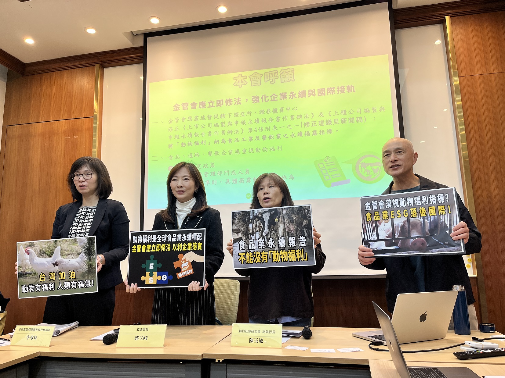 與會立法委員郭昱晴表示,包括產業風險管理、動物疫病、藥物殘留、供應鏈中斷等議題均與動物福利密切相關,動福不是可有可無的加分題,國內尚未明文規定企業須依循的「SASB準則」,應列為須揭露項目;動福是企業必須說清楚的項目,主管機關也應提供企業可以具體改善的建議。