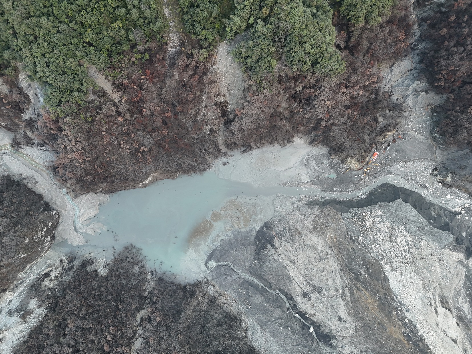 馬太鞍堰塞湖蓄水現況。圖為今年1月25日影像。(圖片提供/林業保育署花蓮分署)