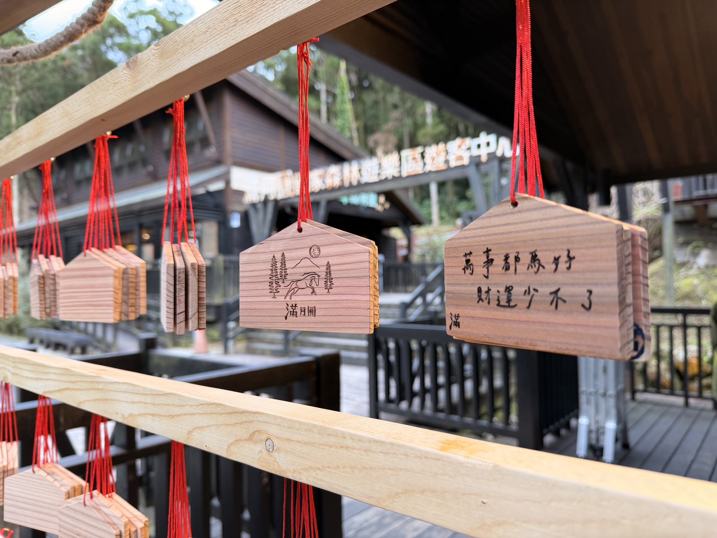 年節期間滿月圓國家森林遊樂區販售由國產柳杉製成的繪馬供人祈福收藏。(圖片提供/滿月圓國家森林遊樂區)