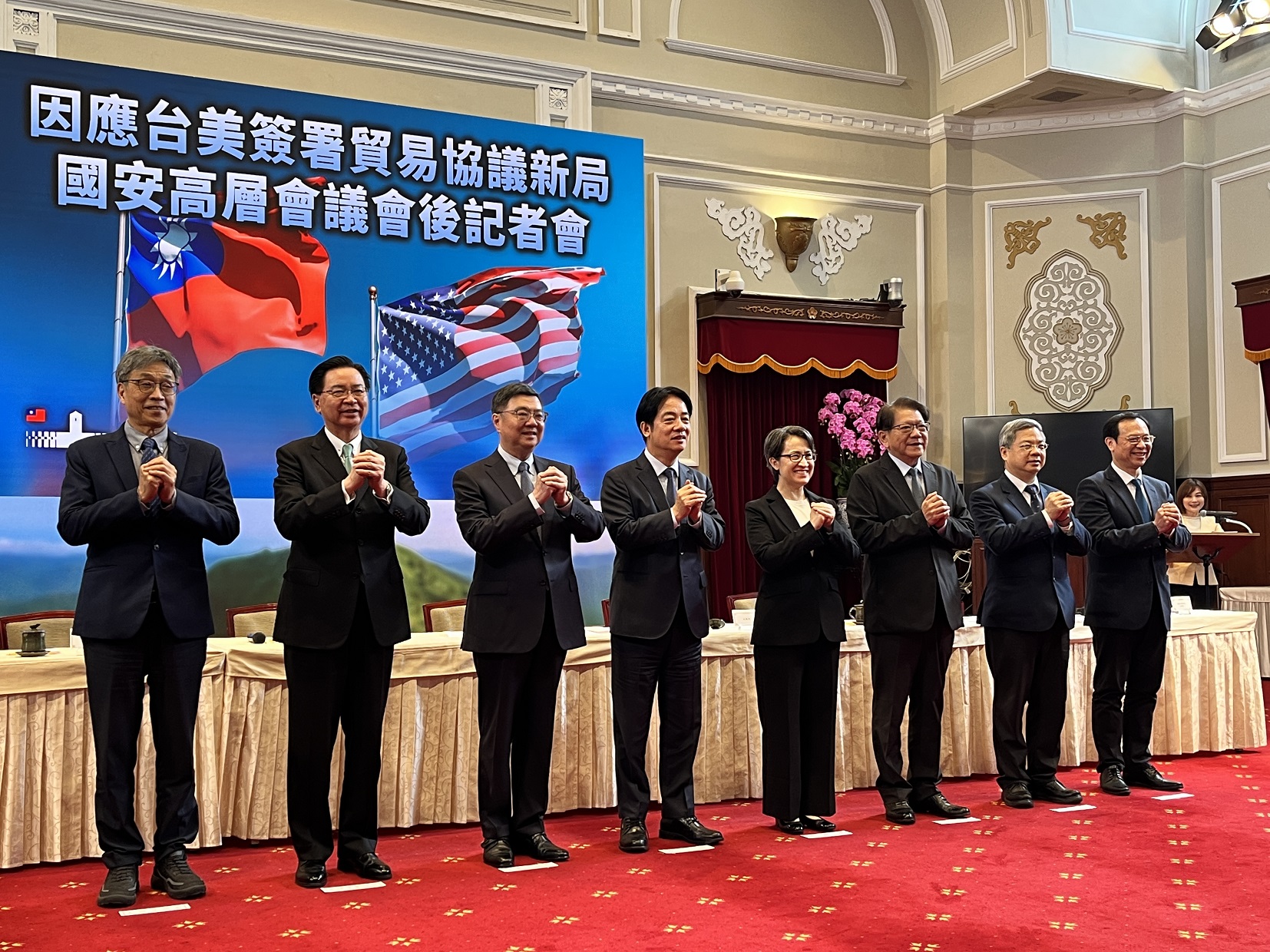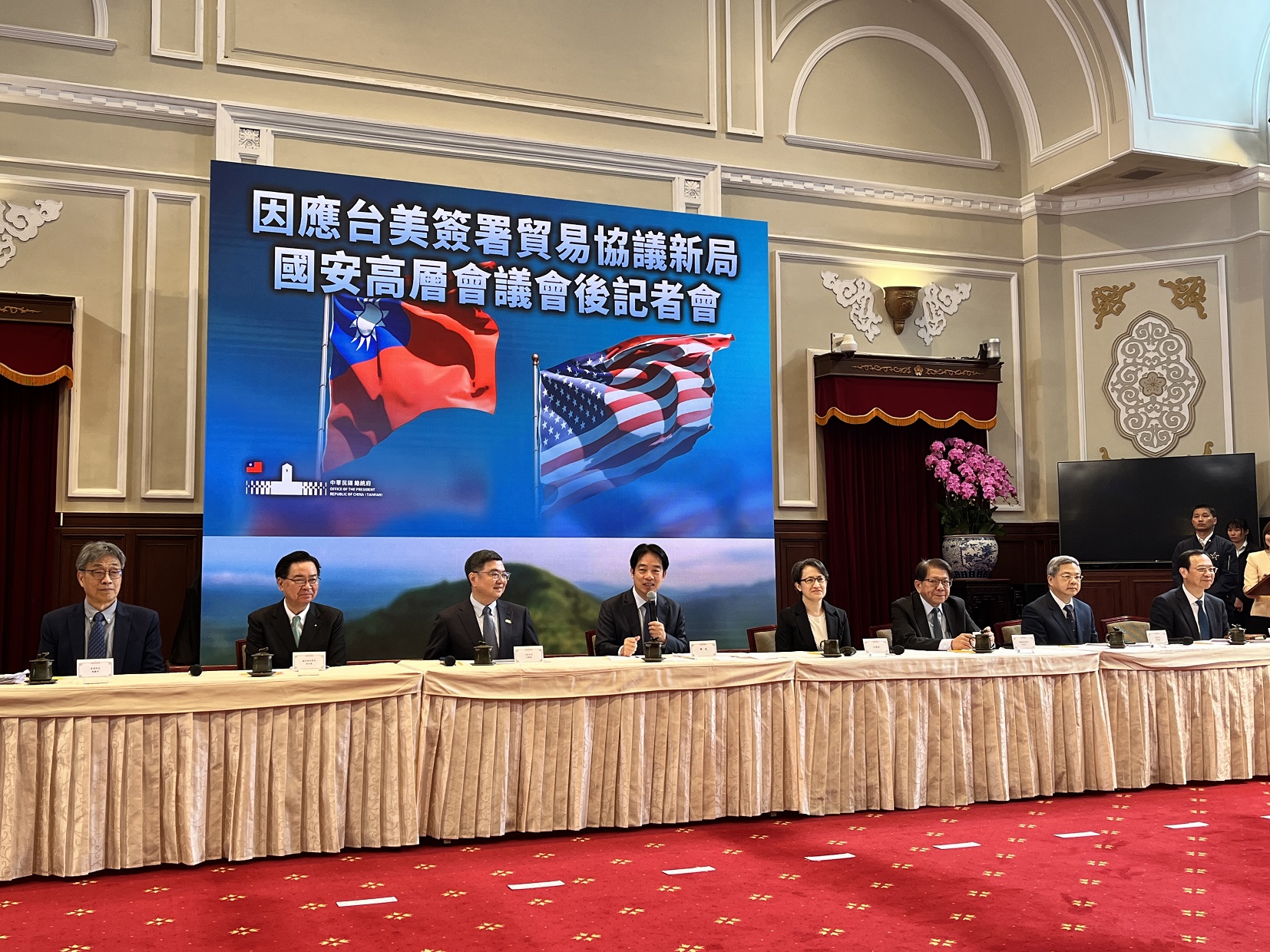 總統賴清德今日上午召開「因應臺美簽署貿易協議新局國安高層會議會後記者會」。(攝影/游昇俯)