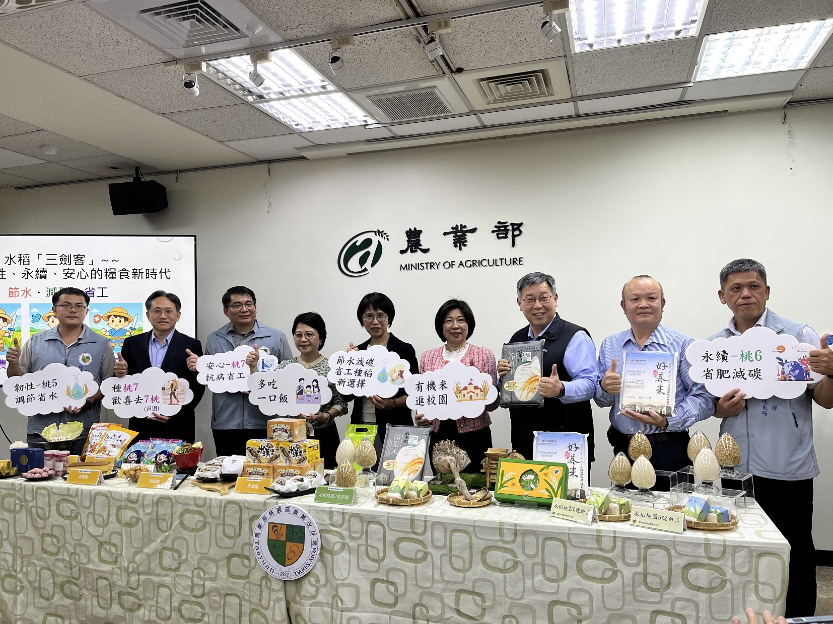 因應氣候變遷下,乾旱、高溫等極端天氣頻仍,影響稻米生產,農業部桃園區農業改良場投入水稻育種,自108年至112年接續育成「桃園5至7號」3個品種,具有節水、省肥、抗病等優良特性,有利調節產期、避開灌溉用水尖峰,有機栽培不用化肥及農藥,產量不減反增,還能響應淨零趨勢減少碳排,守護住生物多樣性,環境更永續。