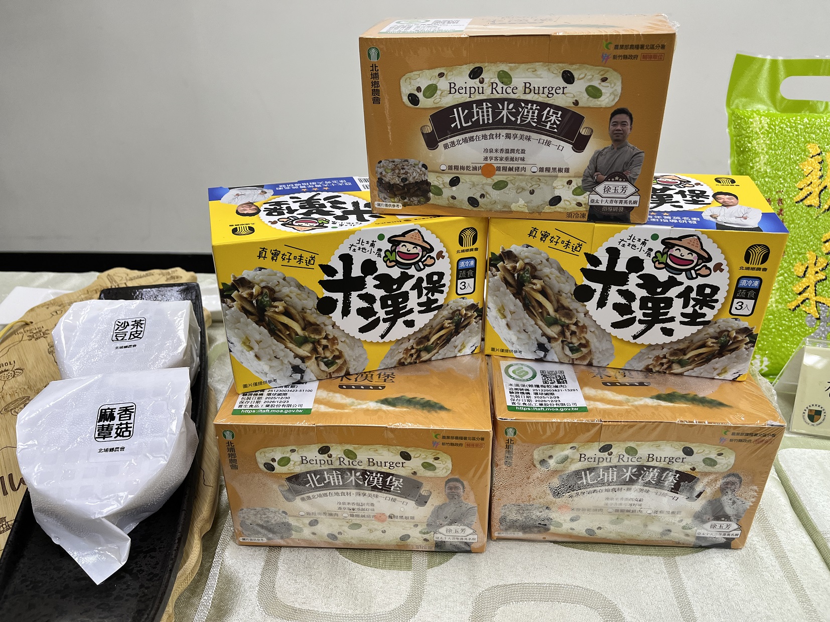 北埔鄉農會開發米漢堡產品未來將使用桃園7號食米。(攝影/游昇俯)