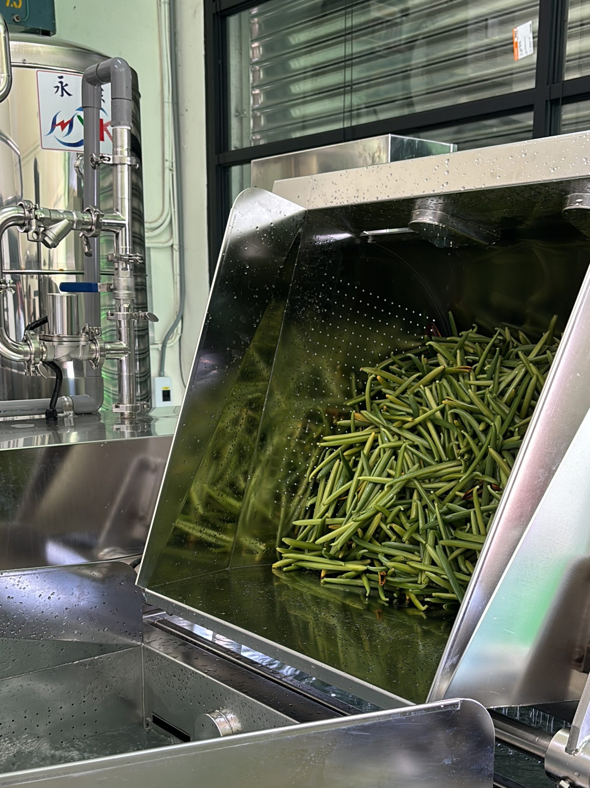 剛採收下的香草莢為青綠色果莢,幾乎沒有香氣,需要加工讓酵素反應產生香草醛等香氣成分。香草莢加工傳統上要經過以熱水殺菁,透過日曬乾燥、發酵,以及放進密封木箱發酵、熟成等程序;但人工刷洗果莢費時費力,清潔程度難以一致,熱水殺菁也常因受熱不均,容易造成果莢表皮燙傷或品質不穩定,進而影響香氣與商品價值,也限制產業規模化發展。