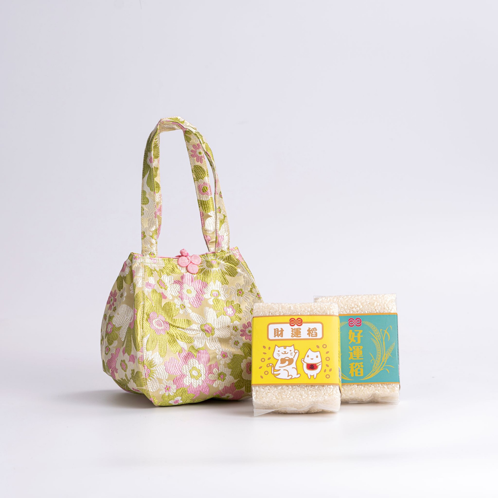 御皇米企業公司以花布提袋包裝的「古典布提米」等,均兼具實用與時尚感。(圖片提供/農糧署)