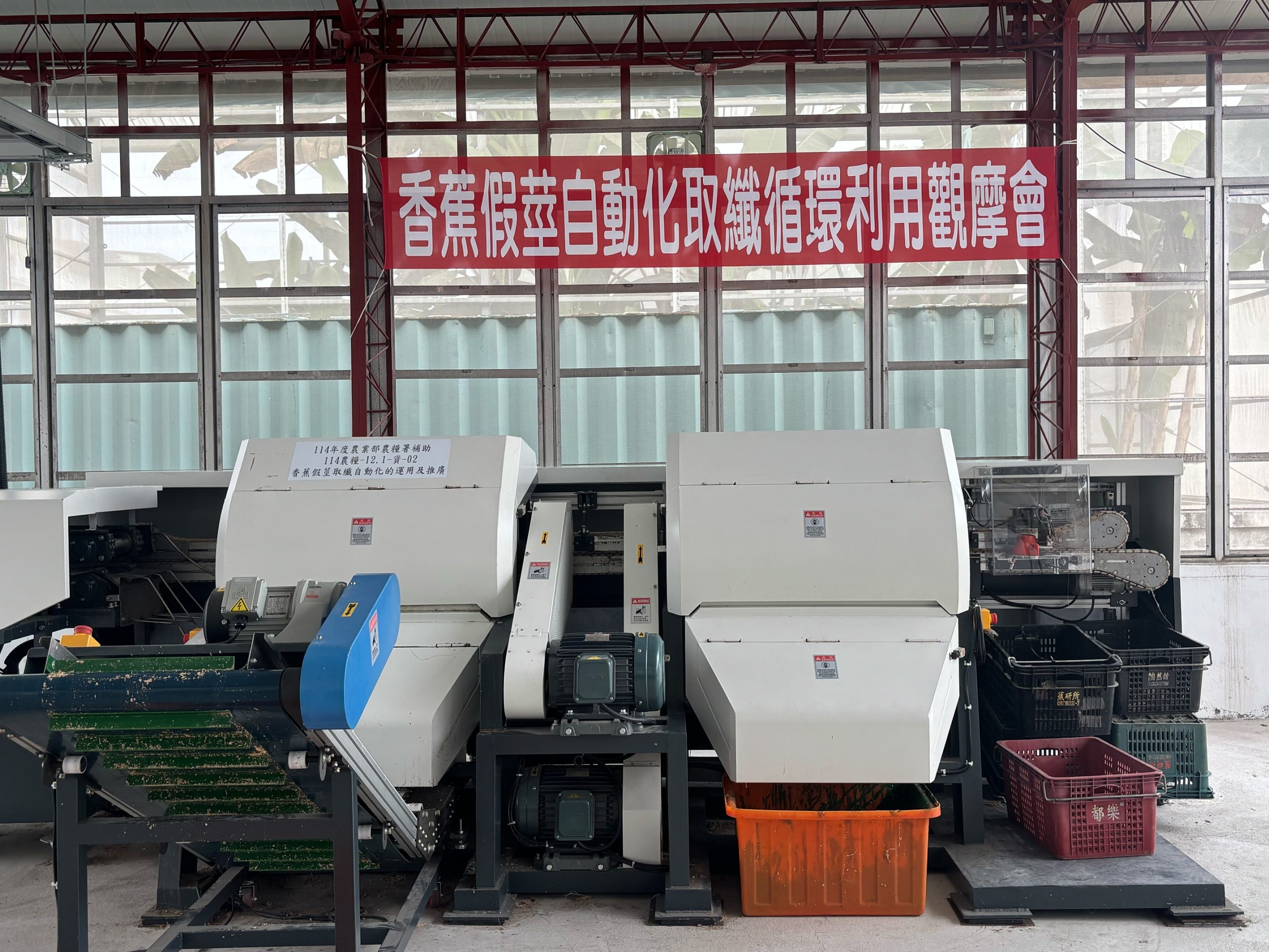 國內栽培香蕉收穫面積超過1萬4,000公頃,農民收穫香蕉之後會留下大量的假莖副產物,香蕉假莖有豐富纖維,原本即是原住民族傳統工藝會利用的纖維原料,農業部農糧署輔導台灣香蕉研究所建置首座香蕉假莖自動化取纖循環場,未來藉由串聯產地原料供應端與紡織產業應用需求,開發農業剩餘資材循環利用商機,減少對石化產品的依賴。