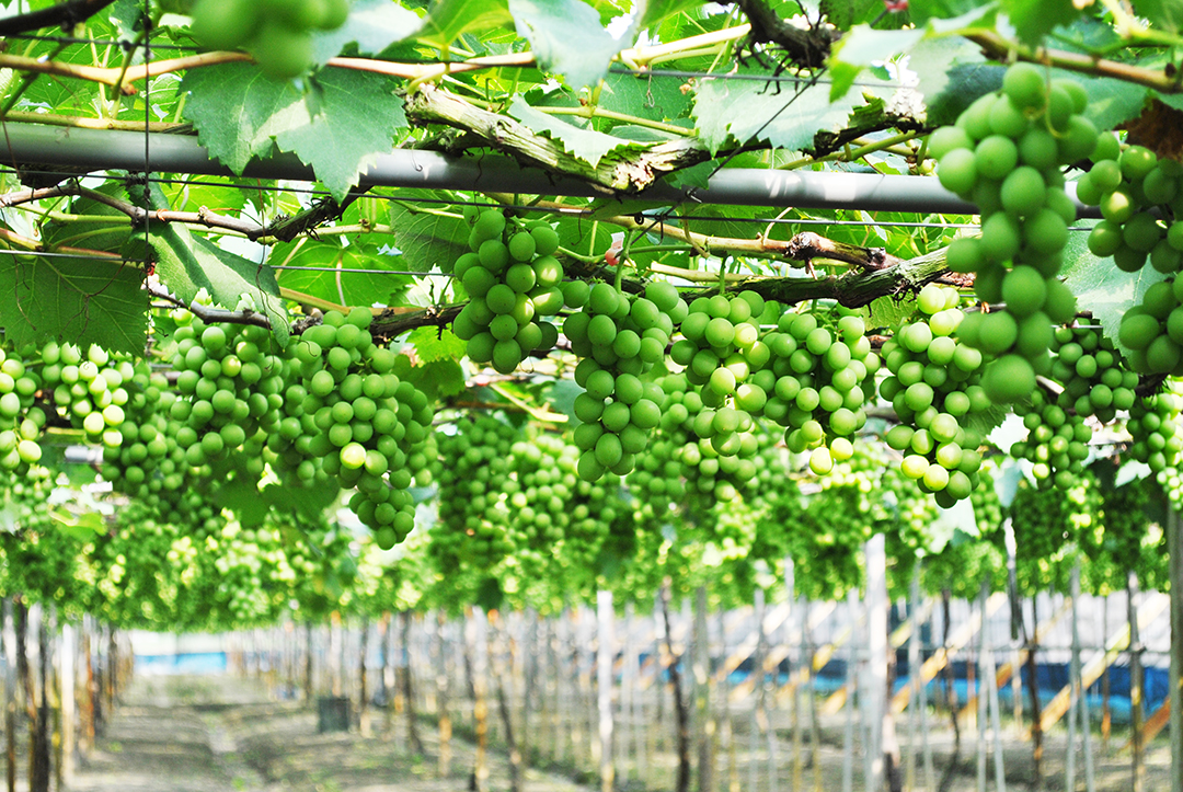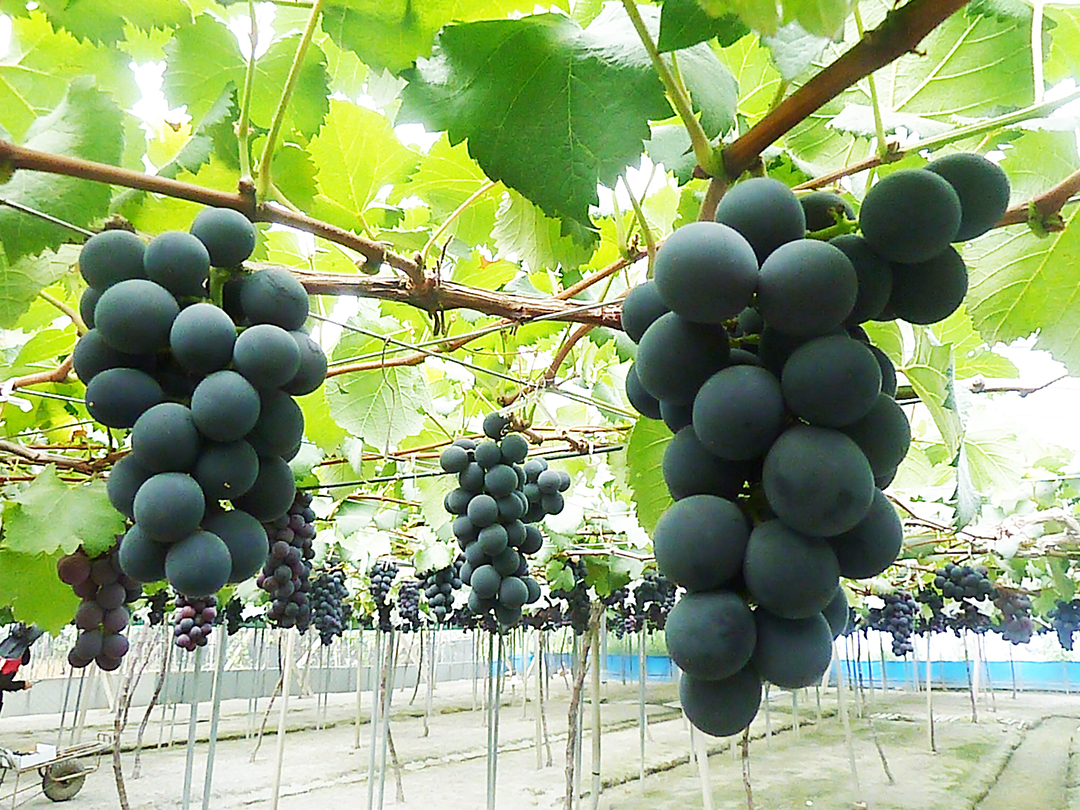 臺中場研究指出,經逆照式10W紅光LED燈處理後,葡萄著果率提高3~5%,疏果後完整果穗提高50%以上,每梢多4~6片葉,葉片面積增加利於光合產物累積,經統計果粒後期重量可提升5~10%,果皮呈現紫黑色,賣相佳。