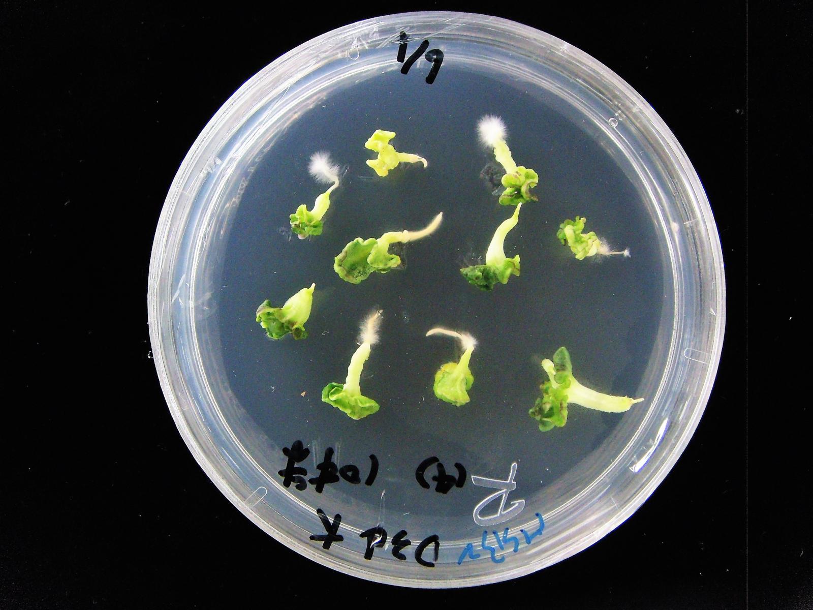 農試所有鑑於此,利用組織培養技術培養包括甘藍、青花菜及花椰菜等十字花科甘藍類蔬菜之未成熟之花粉(小孢子)獲得雙單倍體(Doubled-Haploid,DH)植株,每一雙單倍體植株係由單一小孢子發育並染色體倍加而來,是遺傳上之同質純系,不同雙單倍體植株可視為遺傳背景各異之自交純系,種苗業者可藉由觀察雙單倍體之園藝特性後直接選拔成為育種親本,加速育種流程進行並提升育種效率。