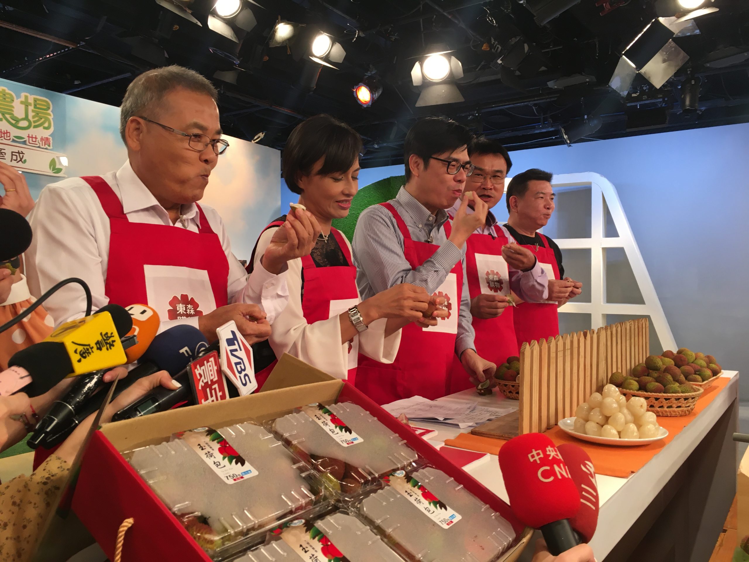 高屏地區5月中旬已進入玉荷包荔枝產季,農委會主委陳吉仲今(25)日再上電視購物平台,化身購物專家,促銷高雄大樹區農會玉荷包粒裝禮盒。陳吉仲表示,農委會不只在國內要促銷玉荷包,明日外銷日本的荔枝、芒果包艙航班即將啟航,可讓國內玉荷包價格維持很好的水準,果農賺大錢。