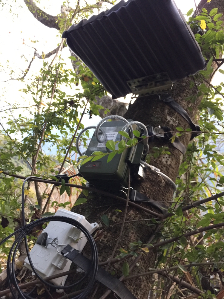 研究人員在野外架設的自動錄音機,收集包括動物聲音在內的各種聲音。(圖片提供/特生中心)