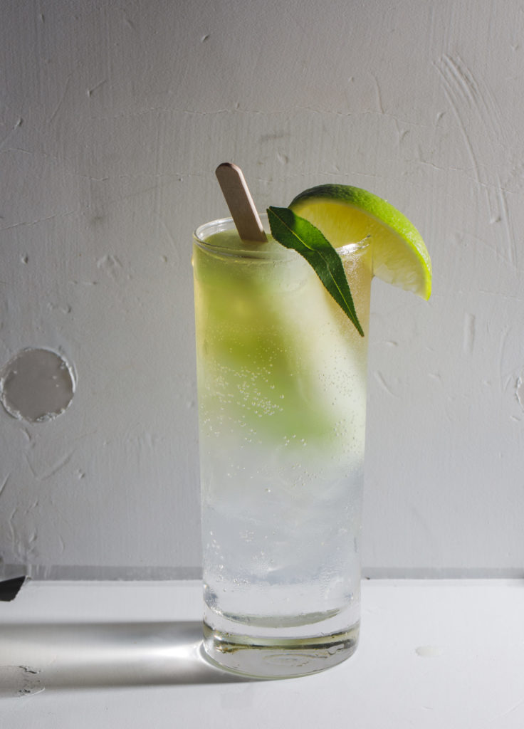無法親赴酒吧也想體驗辛香微醺感,調酒師Polo將經典調酒Gin Tonic改造成可簡單製作的居家版本,以便利商店就能買到的元素及臺灣香料植物為原料,先將刺蔥冷泡於金萱烏龍茶中一晚,「宛若雲朵般輕柔的刺蔥香氣與金萱烏龍奶香感很相襯。」再搭配酸酸甜甜的情人果冰棒及氣泡水,一款沁涼又甜蜜入心的雞尾酒就完成了,隨著冰棒融化,從第一口到最後一口都能喝到不同程度的酸甜變化,增添飲酒樂趣。冰棒也可依照個人喜好替換其他酸甜系的水果口味,像是鳳梨、檸檬冰棒也很合適︒