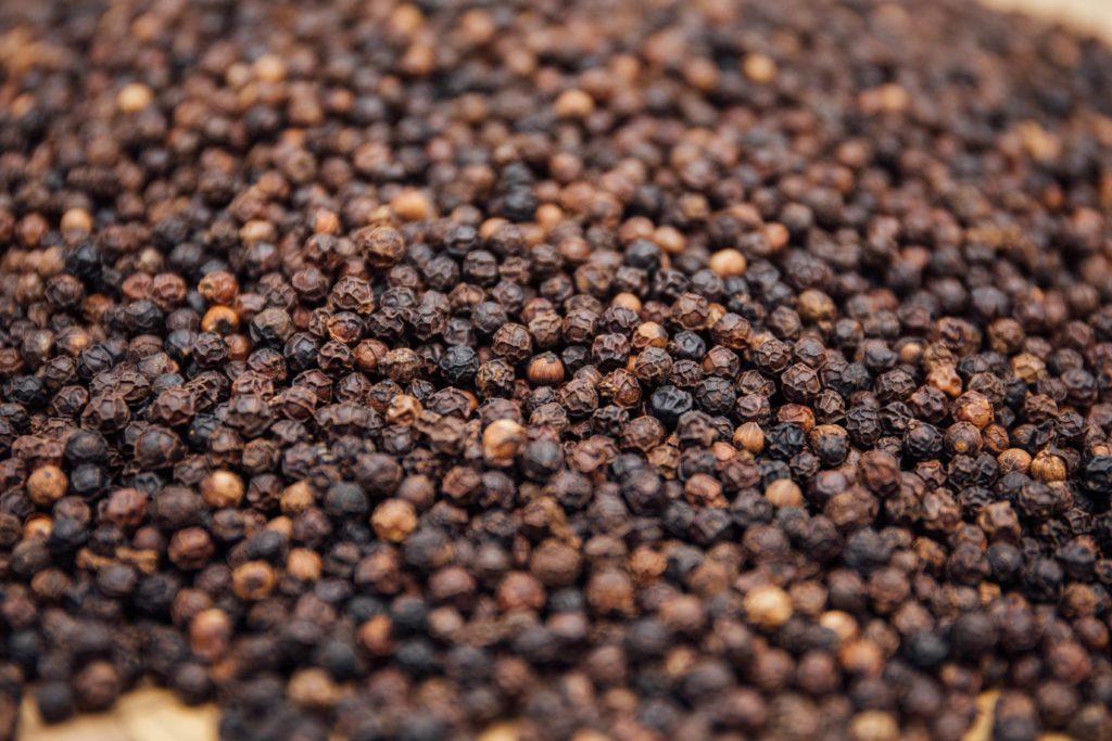 晒好的黑胡椒表面發皺、有明顯紋路,撥動時可聽見清脆的聲響。