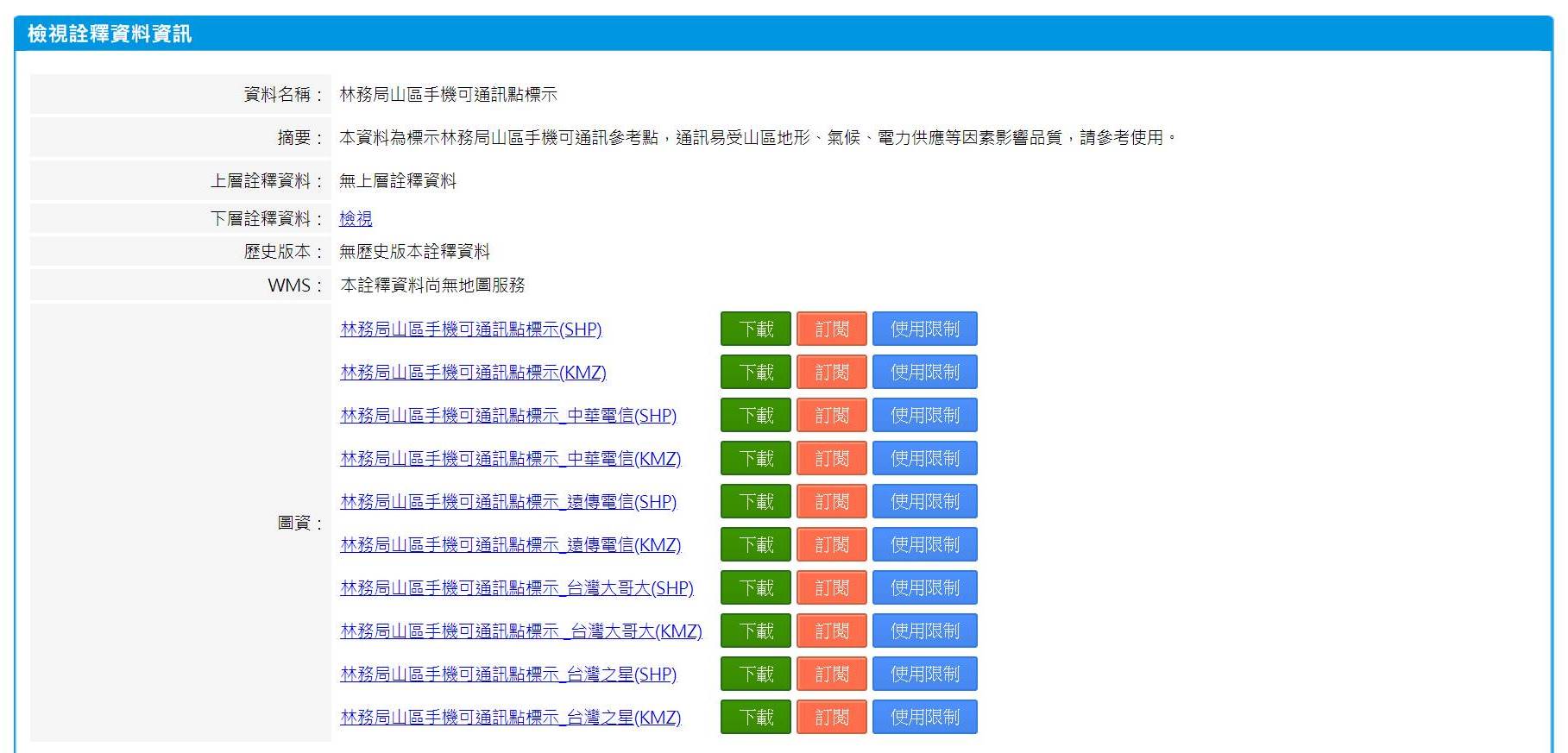 林務局山區手機可通訊點標示已經放置在TGOS網站上,可供民眾或搜救隊伍下載使用。