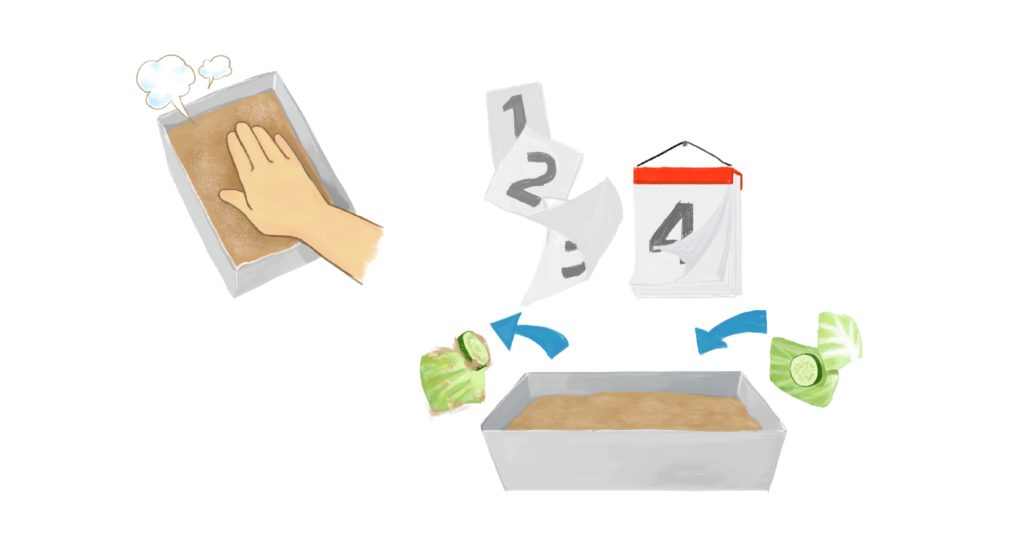 壓出空氣,把容器邊邊角角擦乾淨。每四天取出菜渣,再放新的進去,持續兩週,即養成可以做米糠醬菜的米糠床了。