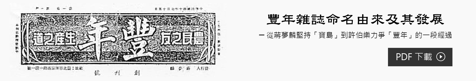 「豐年雜誌」創刊於民國四十年,在臺灣算是歷史最悠久的雜誌。民國112(2023)年7月15日屆滿73年。在當時地方缺乏新聞媒體的情形下,亦是最早深入民間的一份重要刊物。「豐年」為農復會所辦的雜誌,可以說是農復會的「機關報」。但農復會最初決定的名稱卻不是豐年,而是「寶島」,英文名稱叫做「TREASURE ISLAND」。故事不能不從原始創辦人兼執行編輯許伯樂(ROBERT SHEEKS)說起……