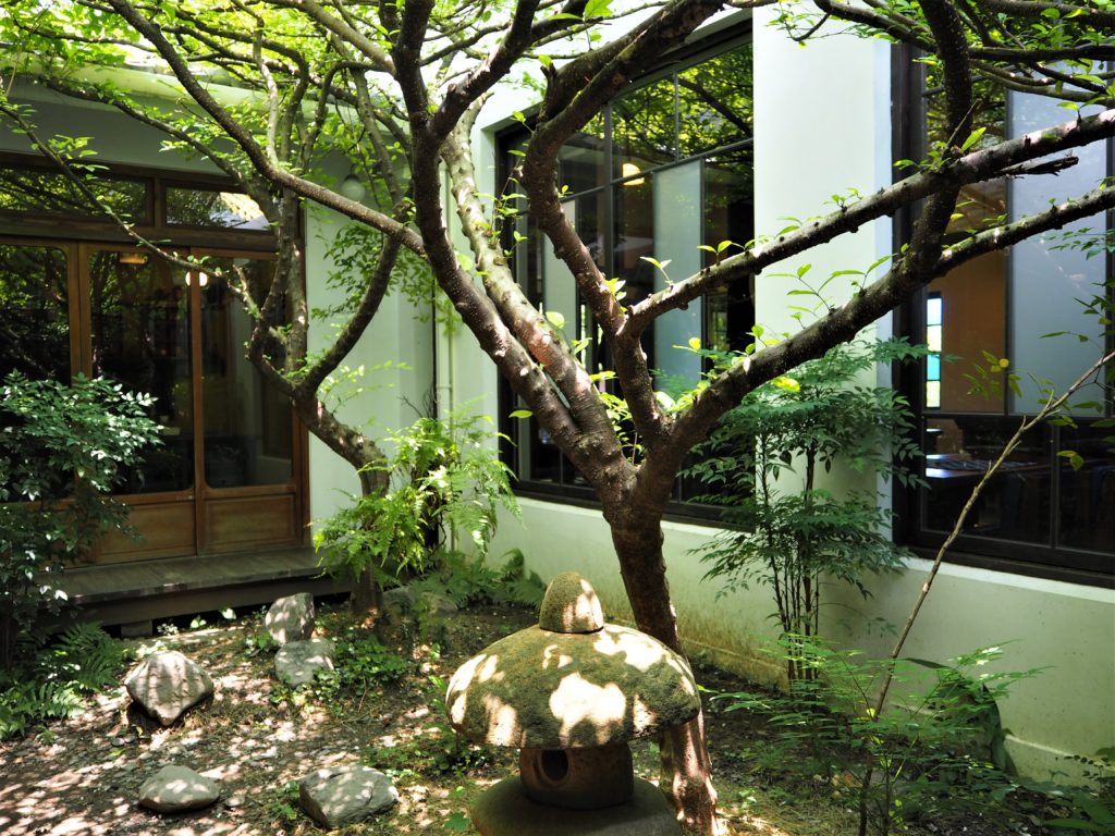 行車在小鎮上蜿蜒,隨意一處魚塭旁水聲轟轟響,旅人只會更篤定這是傳說中的屏東魚塭,直到,仿日式建築的庭園裡,正午陽光穿透臺灣安息香的枝椏灑落在石燈籠上,影子斑駁,就像是說,「雖然不是了不起的大佛,還是請你在這裡保佑人們吧!」這是主人楊文正繪《花地藏》中的一句話,滾下山的大石頭愈鑿愈小,或許這是從大武山上滾下來的石頭,在三平咖啡的日式庭園裡安住。