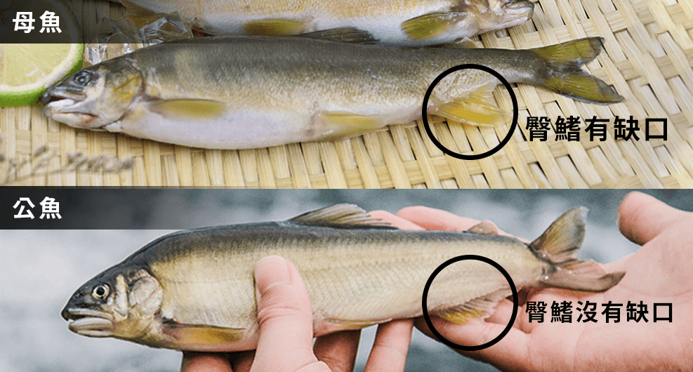 一般市場上,母香魚的經濟價值較高,國人都喜歡吃香魚卵,體驗那種魚卵在嘴裡咬破的鮮甜口感,那到底母香魚跟公香魚到底怎麼分辨呢?相信很多人到市場都分不太清楚,因為從外型上來看,真的只有一個小地方不一樣,其實要分公母非常簡單,主要最明顯的地方就在香魚的臀鰭:母香魚的臀鰭則是有一個缺口;而公香魚的臀鰭是整片完整的圓弧狀。