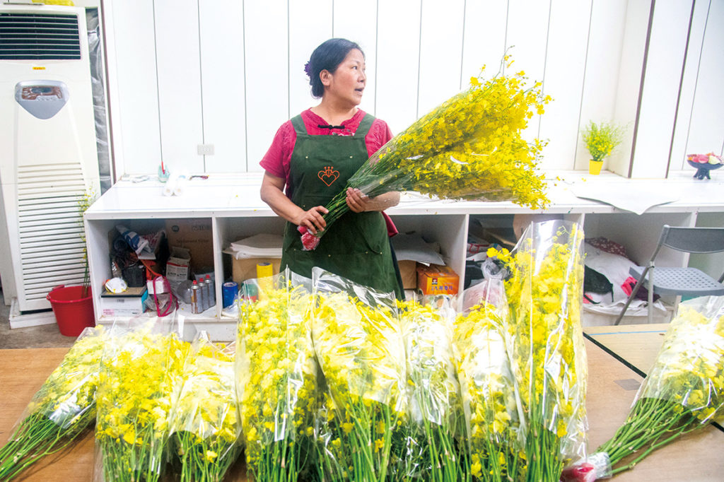 第二是增加通路,農糧署在3月26日起與臺灣花店協會合作行銷,辦理「用花傳幸福」活動,民眾只要上網預購,就可以用150元買到價值300元以上的組合花材,原本我們預計在3月底至5月底提供1萬份,沒想到反應熱烈,一個月就賣光,緊急追加3萬份;目前共有100家花店參與,並擴大實施到外島。