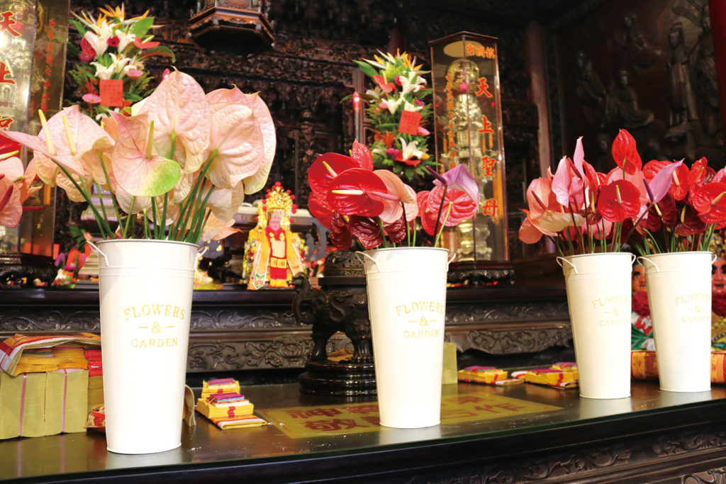 火鶴花外觀高雅樸實,農糧署推廣花香祈福參拜,目前已有八家廟宇參與,陸續還會推廣至各大宮廟。(圖片提供/農糧署)