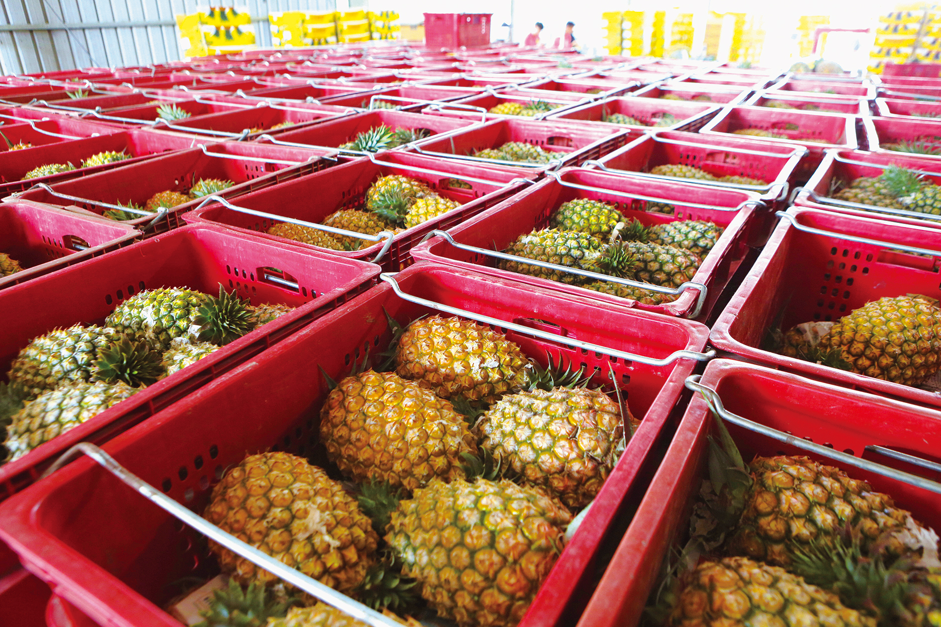 裝籃等待處理的鳳梨。