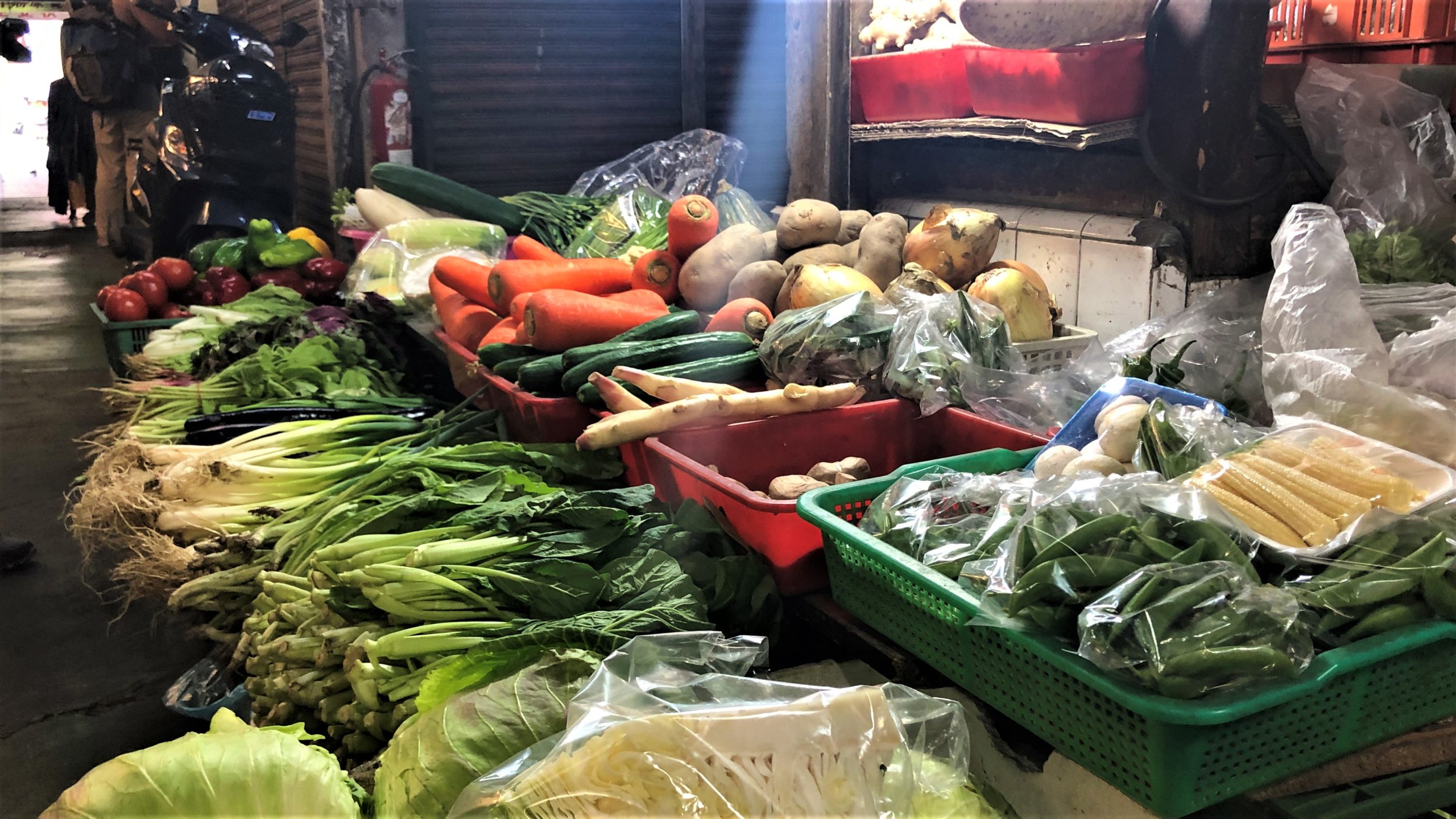 老市場裡的菜攤,每日依舊按時開張,等著老客人上門。