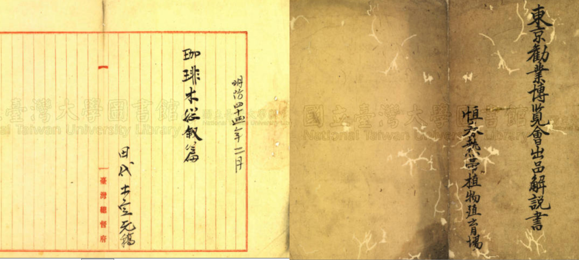 1915 年(大正四年)大正天皇的大饗之儀要求用恆春咖啡,我們可以在1916 年(大正五年)田代安定的《恆春熱帶植物殖育場事業報告書》中看到這一份資料。田代安定是誰?他或許不是第一位在臺灣栽種咖啡的人,卻是第一位用科學研究方法在臺灣培育有用物種的人,把最早植栽在臺北冷水坑的咖啡殘株帶到島嶼南方的博物學家。在此之前,臺灣咖啡豆已在明治時代的日本國內各個博覽會亮相過,並受到青睞。或許,這是在那個想盡攬帝國各處風華的日本人,要在每一次博覽會都設一個臺灣館,並且一定要有臺灣茶與臺灣咖啡來增光。
