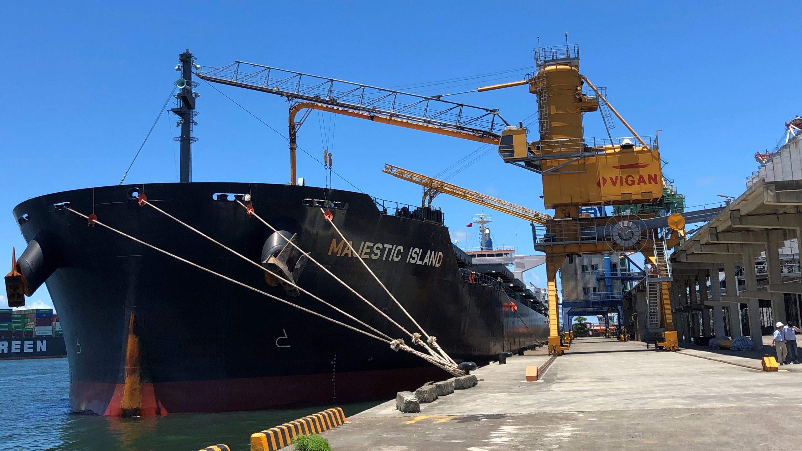 臺灣每年進口4百多萬公噸的硬質玉米,裝載及卸貨作業多數已是機械操作處理。(圖片提供/飼料公會)