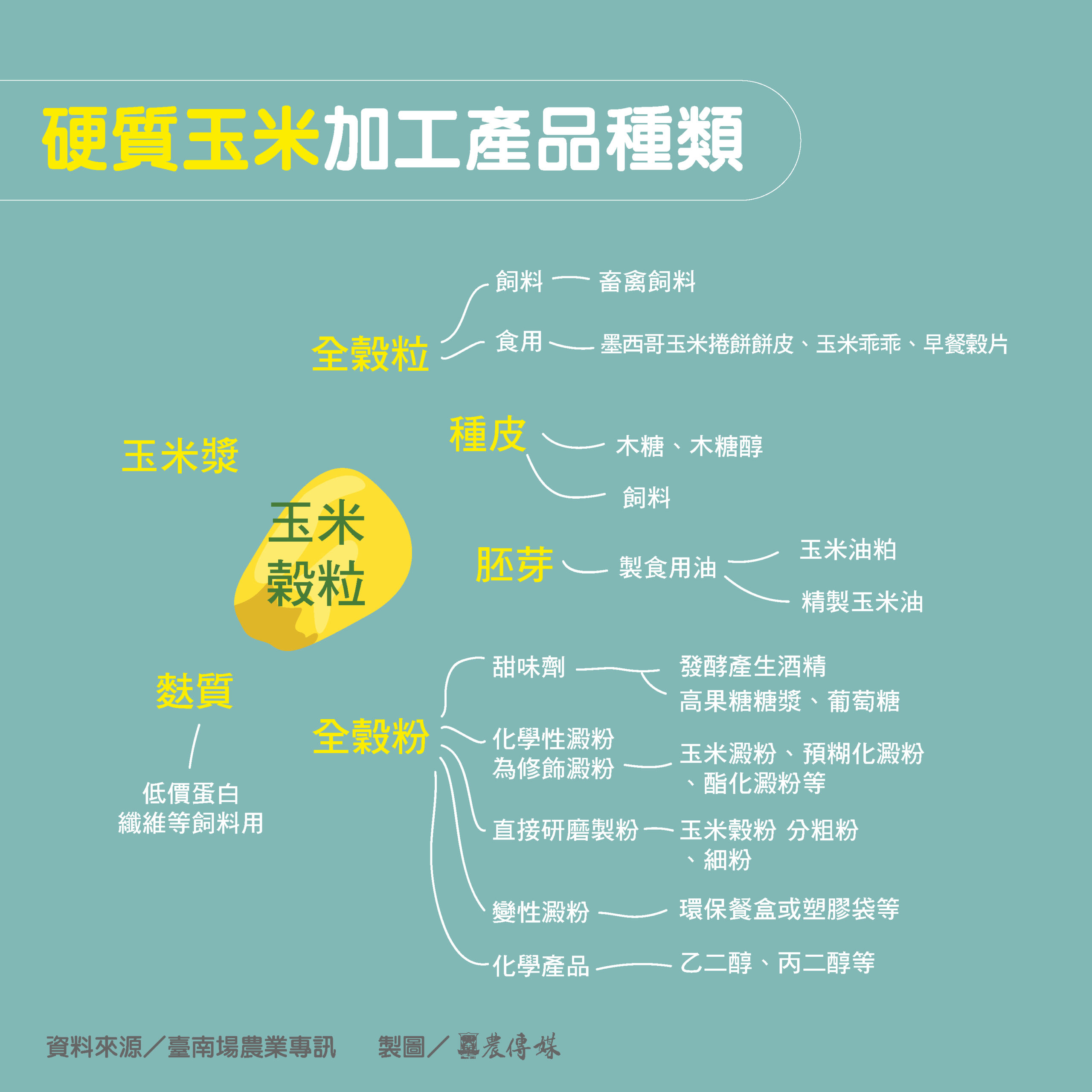 豬吃的硬質玉米有別一般民眾直接食用的甜玉米、糯玉米或玉米罐頭的玉米,硬質玉米與甜玉米、糯玉米品種不同,且要等玉米子完全成熟變硬後才會採收,含有豐富的澱粉養分,是臺灣畜牧業飼料的主要原料。