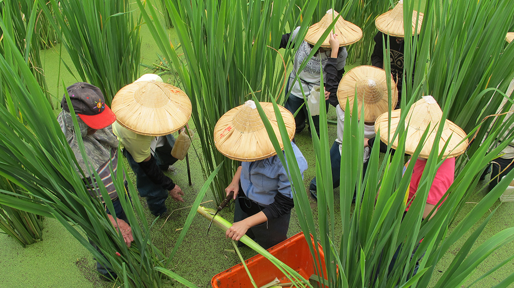 生態復育衍生體驗經濟,茭白筍達人教你下田採筍趣。(圖片提供/南投縣一新社區發展協會)