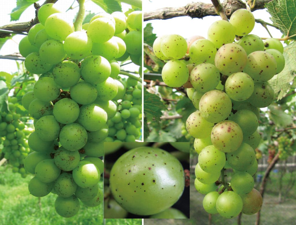 葡萄晚腐病在果實尚未轉色前的病徵。