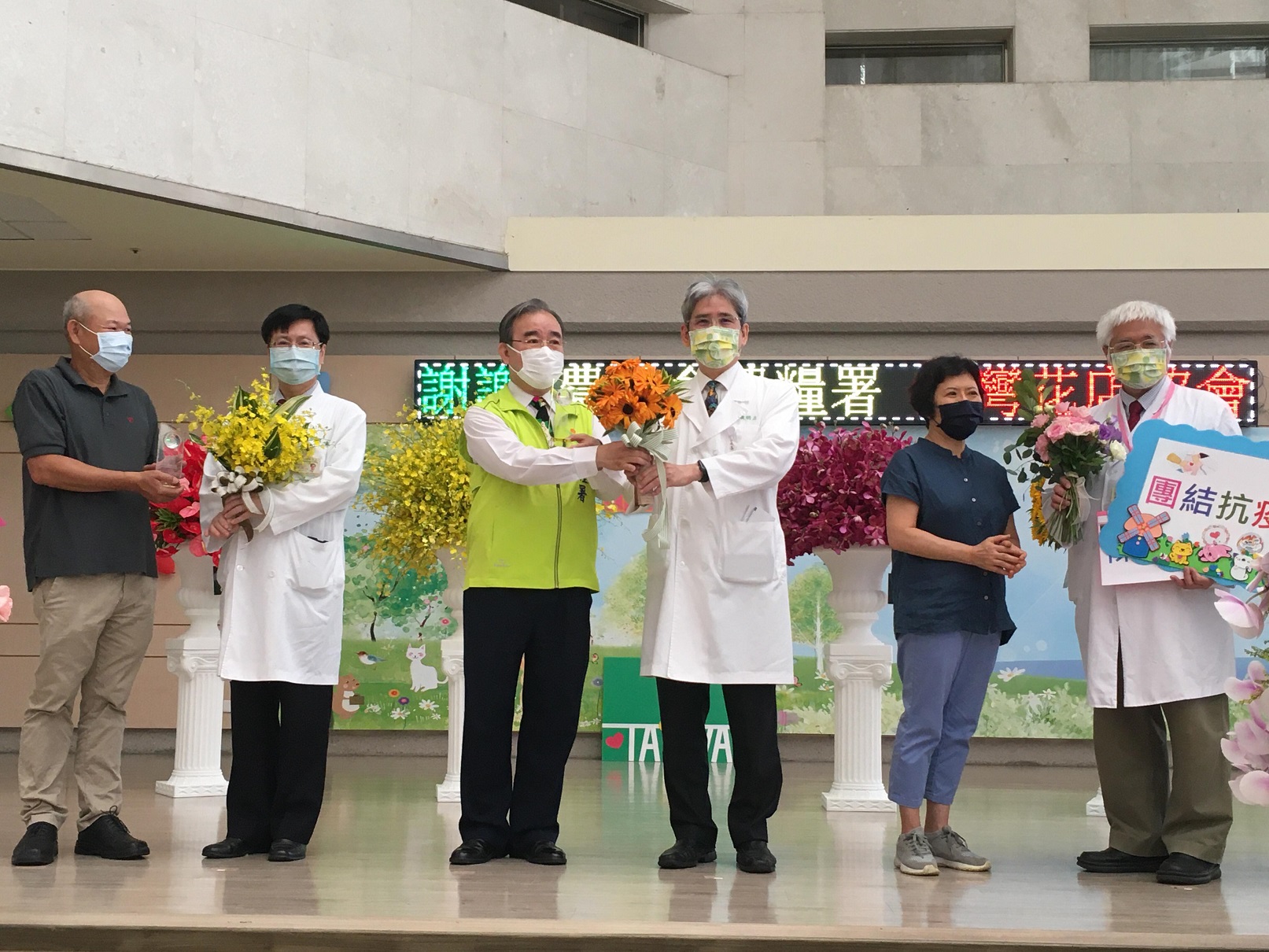 農糧署長胡忠一(左3)代表致贈花束給北榮副院長侯明志(左4)。(攝影/游昇俯)