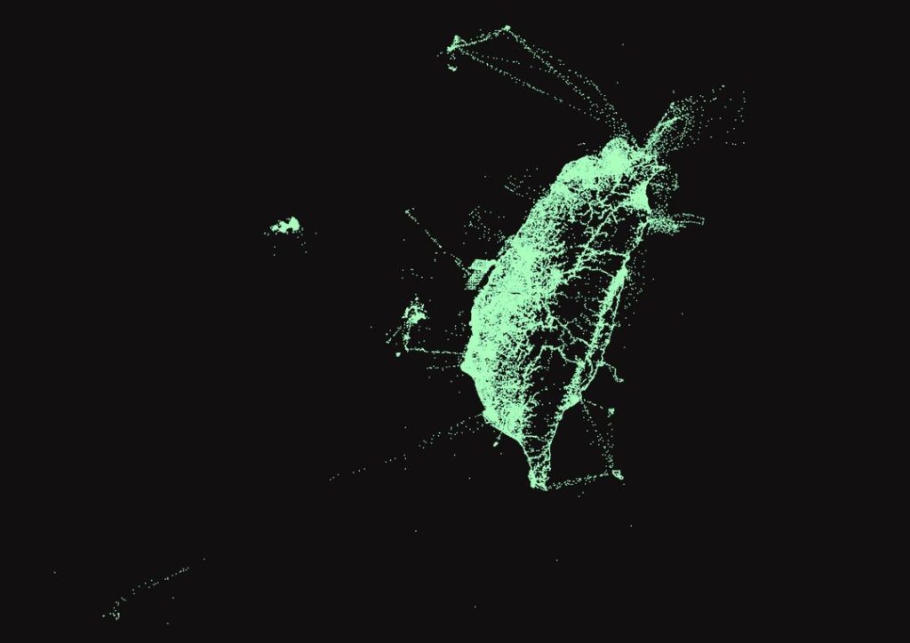 彰化的離岸風場在地圖上也明顯發亮,林瑞興表示,到離岸風場做調查的人,在調查之餘進行賞鳥活動,把觀察到的鳥類資料上傳,地圖上竟也能畫出離岸風場的外形。再往北走是澎湖、金門、馬祖,馬祖的東引島很特別,每年的4、5月及9月至11月,小小的島上聚集好幾百名鳥人,在這裡等著遷徙的候鳥經過。